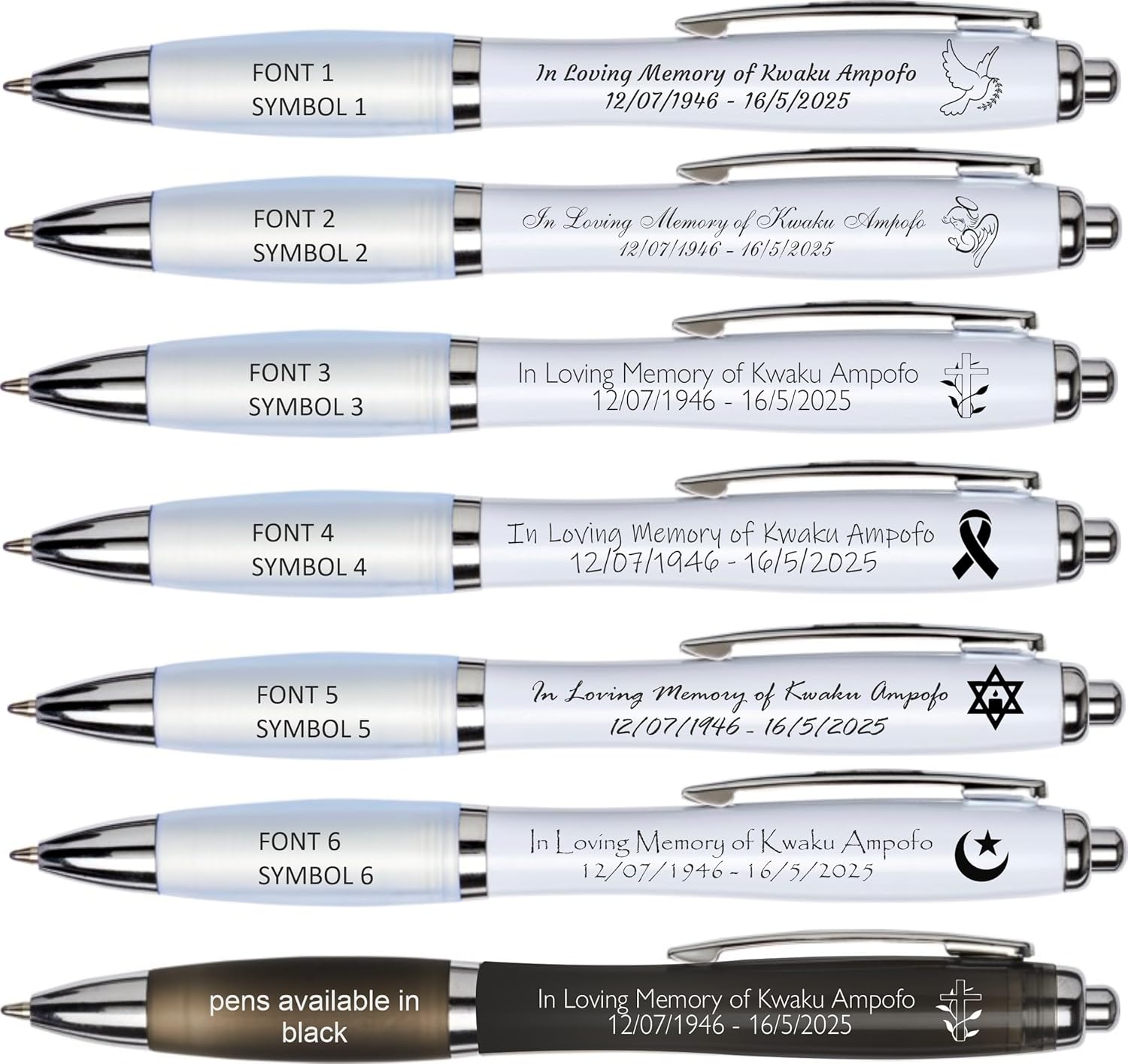 Each pen is custom-printed with your chosen name and dates, creating a subtle yet heartfelt tribute to someone special.
